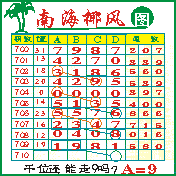 “南海椰风”第1710期推荐版局规律,本期千位89走三步.