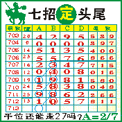 七招定头尾”第1713期推荐版局规律,本期主攻27千位走第五步.