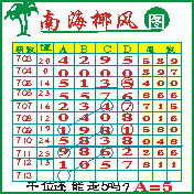 “南海椰风”第1713期推荐版局规律,本期千位57走三步.