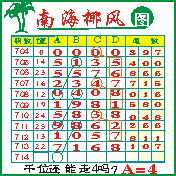 “南海椰风”第1714期推荐版局规律,本期千位14走三步.