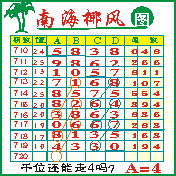 “南海椰风”第1720期推荐版局规律,本期千位45走三步.