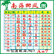 “南海椰风”第1726期推荐版局规律,本期千位67走三步.