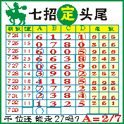 七招定头尾”第1733期推荐版局规律,本期主攻27千位走第四步.
