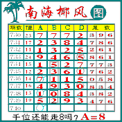 “南海椰风”第1740期推荐版局规律,本期千位68走三步.