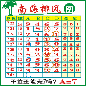 “南海椰风”第1743期推荐版局规律,本期千位57走三步.