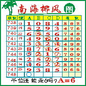 “南海椰风”第1748期推荐版局规律,本期千位68走三步.