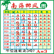 “南海椰风”第1826期推荐版局规律,本期千位34走三步.
