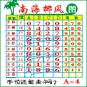 “南海椰风”第1863版局规律,本期千位46走三步.