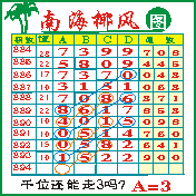 “南海椰风”第1894期推荐版局规律,本期千位39走三步.