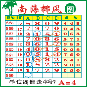“南海椰风”第1895期推荐版局规律,本期千位46走三步.