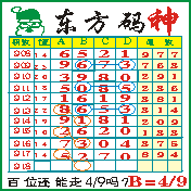 “东方码神”第1918期推荐此隔板规律,本期百位站“49”走第三步.