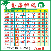 “南海椰风”第1937期推荐版局规律,本期千位89走三步.