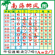 “南海椰风”第1938期推荐版局规律,本期千位27走三步.