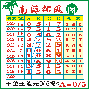 “南海椰风”第1939期推荐版局规律,本期千位05走三步.