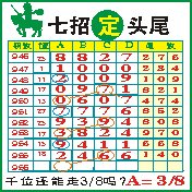 七招定头尾”第1956期推荐版局规律,本期主攻38千位走第四步.