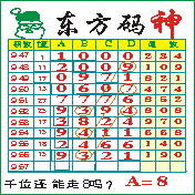 “东方码神”第1957期推荐此隔板规律,本期千位站“68”走第三步.