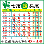 七招定头尾”第1961期推荐版局规律,本期主攻49个位走第四步.