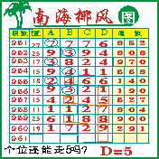 “南海椰风”第1961期推荐版局规律,本期个位75走三步.