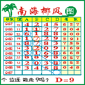 “南海椰风”第1967期推荐版局规律,本期个位91走三步.