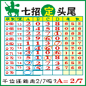 七招定头尾”第1975期推荐版局规律,本期主攻27千位走第五步.