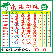 “南海椰风”第1975期推荐版局规律,本期个位02走三步.