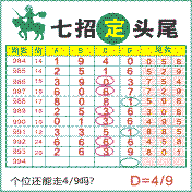七招定头尾”第1994期推荐版局规律,本期主攻49个位走第四步.