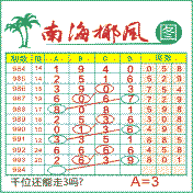 “南海椰风”第1994期推荐版局规律,本期千位35走四步.