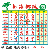 “南海椰风”第1995期推荐版局规律,本期千位15走三步.