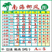 “南海椰风”第2000期推荐版局规律,本期千位56走三步.