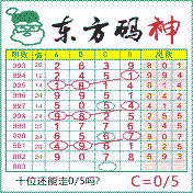 “东方码神”第2003期推荐此隔板规律,本期十位站“05”走第三步.