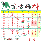 “东方码神”第2015期推荐此隔板规律,本期百位站“6”,个位站“1”,走第三步.