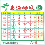 “南海椰风”第2015期推荐版局规律,本期千位91走三步.