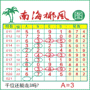 “南海椰风”第2021期推荐版局规律,本期千位23走三步.