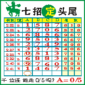 七招定头尾”第2042期推荐版局规律,本期主攻05千位走第四步.