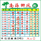 “南海椰风”第2049期推荐版局规律,本期千位08走三步.