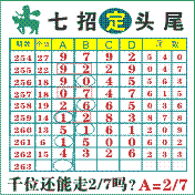 七招定头尾”第2063期推荐版局规律,本期主攻27千位走第五步.
