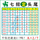 七招定头尾”第2065期推荐版局规律,本期主攻27千位走第五步.