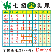 七招定头尾”第2076期推荐版局规律,本期主攻49个位走第四步.