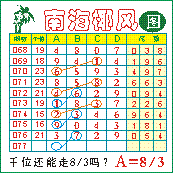 南海椰风”第2077期推荐版局规律,本期千位38走三步.
