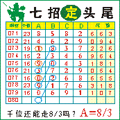 七招定头尾”第2080期推荐版局规律,本期主攻38千位走第四步.