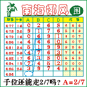 “南海椰风”第2086期推荐版局规律,本期千位27走三步.