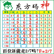 “东方码神”第2123期推荐此隔板规律,本期推荐:0527百位,0516个位.