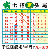 七招定头尾”第2130期推荐版局规律,本期主攻38千位走第五步.