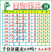 “南海椰风”第2137期推荐版局规律,本期千位49走三步.