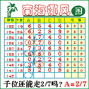 “南海椰风”第2142期推荐版局规律,本期千位27走三步.