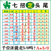 “七招定头尾”第2156期推荐版局规律,本期主攻05千位走第五步.
