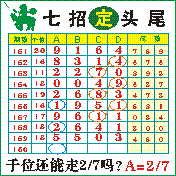 “七招定头尾”第2160期推荐版局规律,本期主攻27头走第五步.