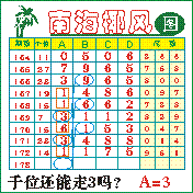 “南海椰风”第2173期推荐版局规律,本期千位23走三步.