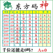 “东方码神”第2211期推荐此隔板规律,本期推荐:千位0369,个位1638