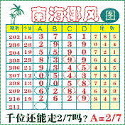 “南海椰风”第2211期推荐版局规律,本期千位27走三步.